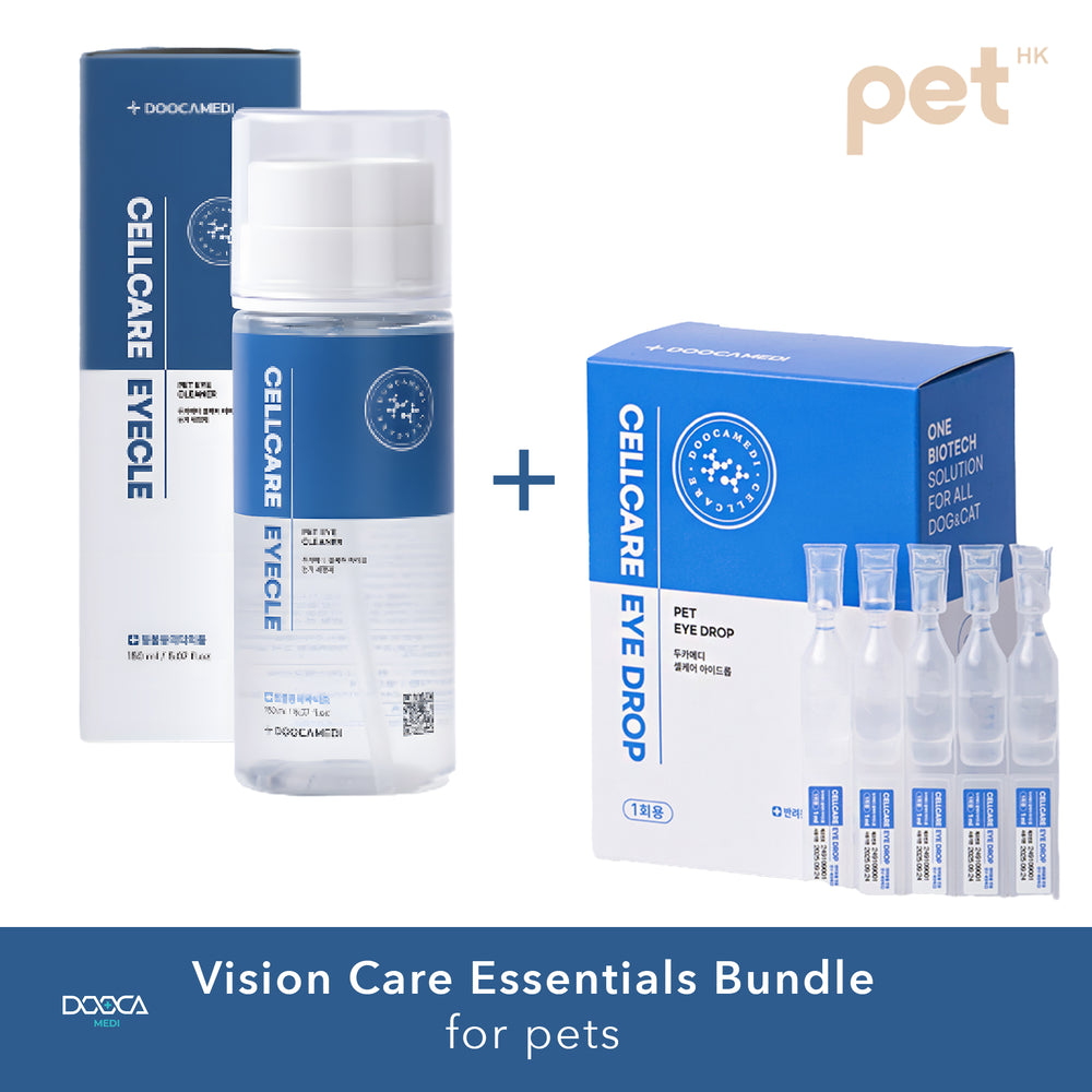 Introducing the Vision Care Essentials Bundle, a comprehensive eye care solution designed to keep your pet's eyes healthy and vibrant. This bundle combines two premium products: Doocamedi Cellcare Eyecle and Doocamedi Cellcare Pet Eye Drop, formulated with advanced stem cell bio-actives for gentle yet effective care.