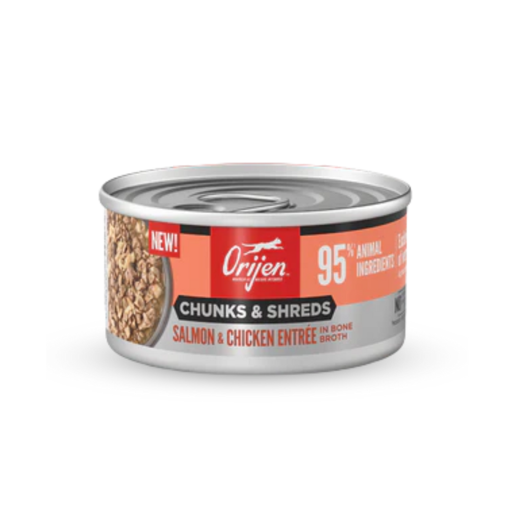 Nourish your cat with the texture and variety of raw animal ingredients packed into every can of ORIJEN™ Chunks & Shreds.