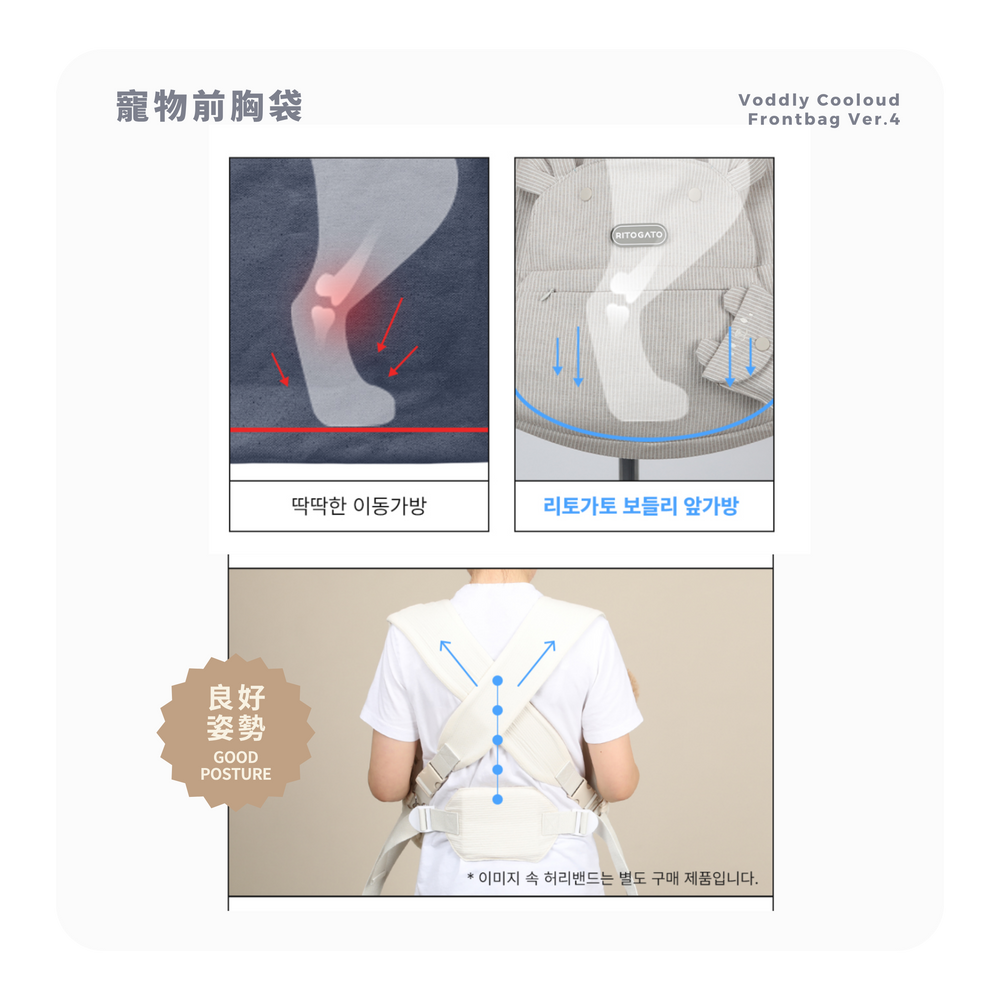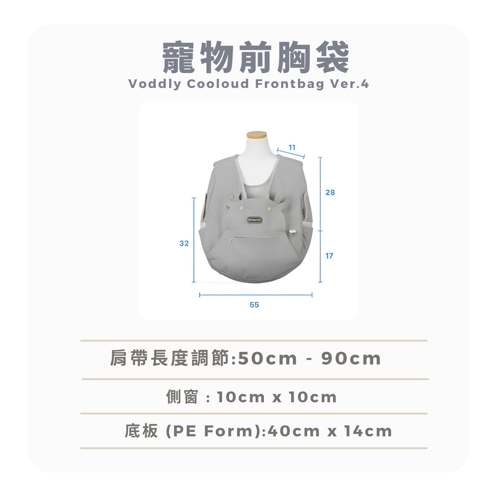 The RITOGATO Voddly Cooloud Frontbag Ver.4 is designed like a baby carrier, distributing weight across both shoulders. This ensures that pets feel lighter while supporting their entire body for comfortable movement.
